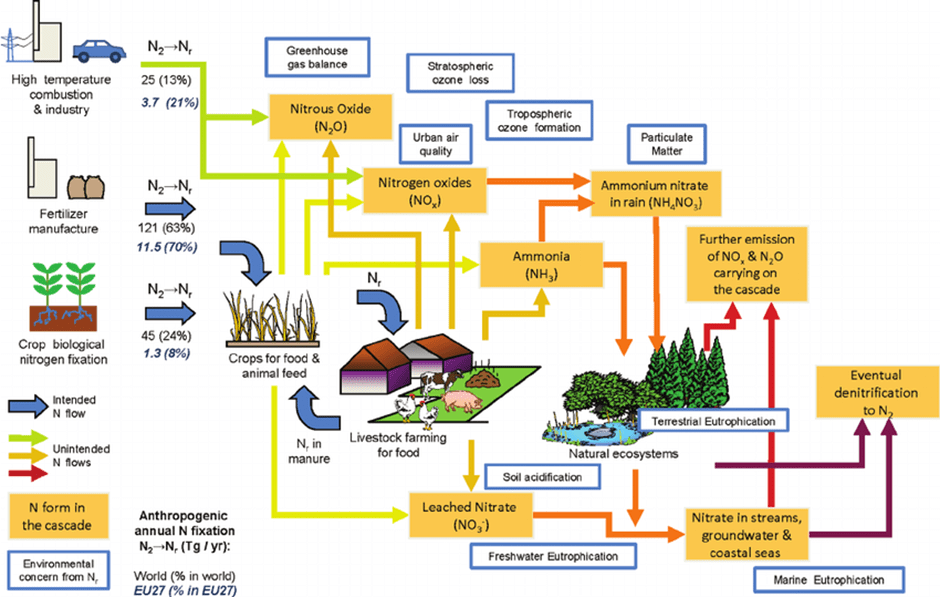4. Fowler D, Coyle M, Skiba U, Sutton MA, Cape JN, Reis S, Sheppard LJ, Jenkins A, Grizzetti B, Galloway JN, Vitousek P, Leach A, Bouwman AF, Butterbach-Bahl K, Dentener F, Stevenson D, Amann M, Voss M. The global nitrogen cycle in the twenty-first century. Philos Trans R Soc Lond B Biol Sci. 2013 May 27;368(1621):20130164. doi: 10.1098/rstb.2013.0164. PMID: 23713126; PMCID: PMC3682748.