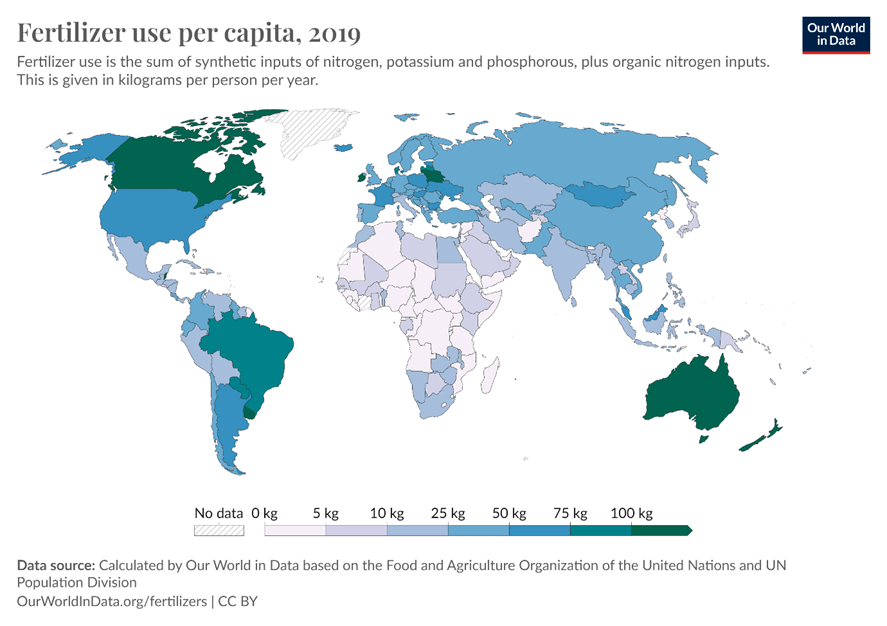 6. Hannah Ritchie, Max Roser and Pablo Rosado (2022) - “Fertilizers” Published online at OurWorldInData.org. Retrieved from: 'https://ourworldindata.org/fertilizers' [Online Resource]