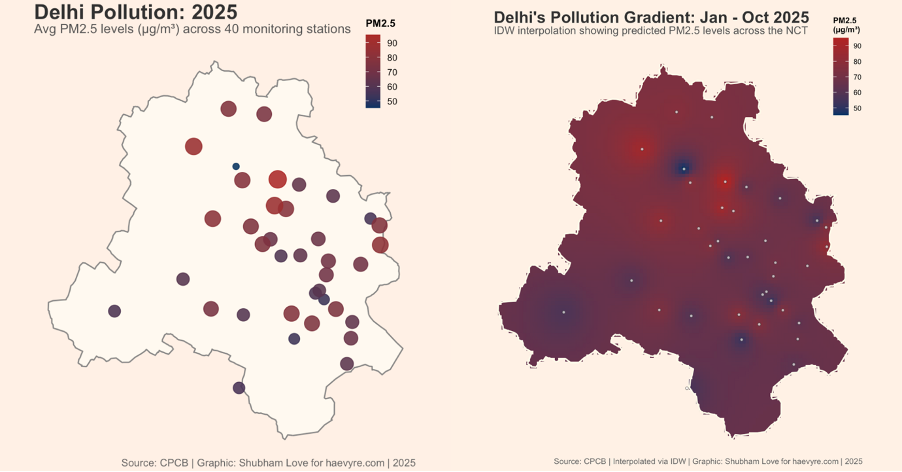 Note to Readers: This article presents an independent exploratory analysis of public air quality data sourced from the Central Pollution Control Board (CPCB). The visualizations and statistical models used here are simplified representations intended to give the general reader an appreciation of the broad structural mechanics driving Delhi's smog. This work is done with the best of intent and knowledge but does not claim the rigor of peer-reviewed academic literature, nor should it substitute for official government reports or policy frameworks. Complex atmospheric dynamics involve variables beyond the scope of this analysis, and readers are encouraged to consult the extensive body of rigorous scientific studies that exist on this subject for a more granular understanding. All data was sourced from airquality.cpcb.gov.in.